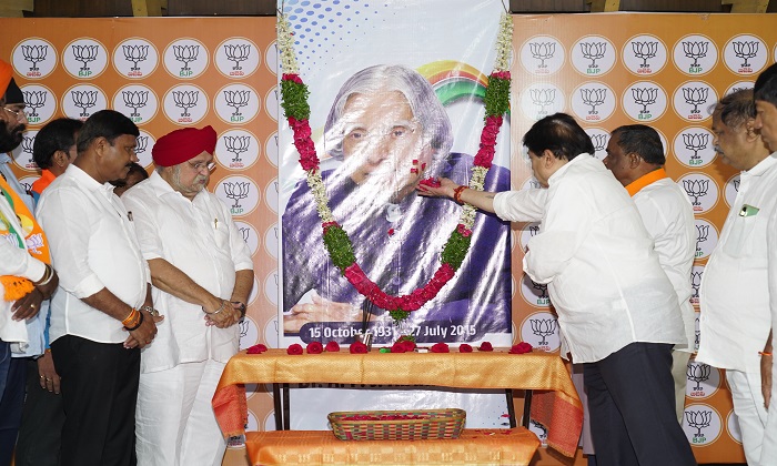 అంతేకాక, మనం ఇతర దేశాలకు కూడా ఎగుమతులు చేయగలగుతున్న స్థితికి చేరుకున్నాం. కలాం సేవలను గుర్తు చేసుకుంటూ, వారికి నివాళులర్పిస్తూ, వారి జీవితం, తత్త్వాలను ముందుకు తీసుకెళ్లాలనే పిలుపునిచ్చేందుకు బుధవారం బీజేపీ రాష్ట్ర కార్యాలయంలో ఈ వేడుకలు నిర్వహించామన్నారు. ప్రతి కార్యకర్త కూడా ఆ మార్గంలో ముందడుగు వేయాలనే ఆశిస్తున్నట్లు తెలిపారు.