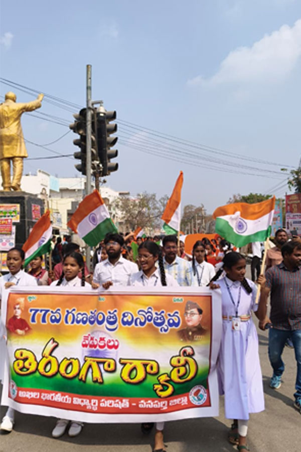 జాతీయ భావనను, రాజ్యాంగ విలువలను పెంపొందించడమే ఏబీవీపీ లక్ష్యమని ఏబీవీపీ రాష్ట్ర కార్యవర్గ సభ్యులు జ్ఞానేశ్వర్ అన్నారు. భారతదేశ 77 వ గణతంత్ర దినోత్సవాన్ని పురస్కరించుకుని శనివారం విద్యార్థులు, ఏబీవీపీ నాయకులు, కార్యకర్తలు కలిసి దేశభక్తి నినాదాలతో తీరంగా ర్యాలీని ఘనంగా నిర్వహించారు. ఈ సందర్భంగా జ్ఞానేశ్వర్ మాట్లాడుతూ..