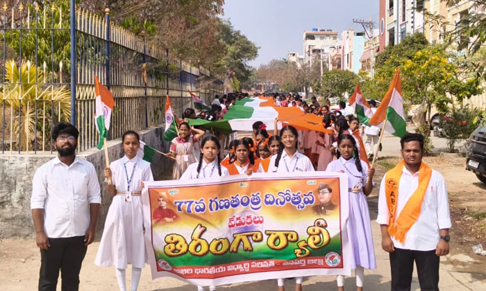 జాతీయ భావనను, రాజ్యాంగ విలువలను పెంపొందించడమే ఏబీవీపీ లక్ష్యమని ఏబీవీపీ రాష్ట్ర కార్యవర్గ సభ్యులు జ్ఞానేశ్వర్ అన్నారు. భారతదేశ 77 వ గణతంత్ర దినోత్సవాన్ని పురస్కరించుకుని శనివారం విద్యార్థులు, ఏబీవీపీ నాయకులు, కార్యకర్తలు కలిసి దేశభక్తి నినాదాలతో తీరంగా ర్యాలీని ఘనంగా నిర్వహించారు. ఈ సందర్భంగా జ్ఞానేశ్వర్ మాట్లాడుతూ..