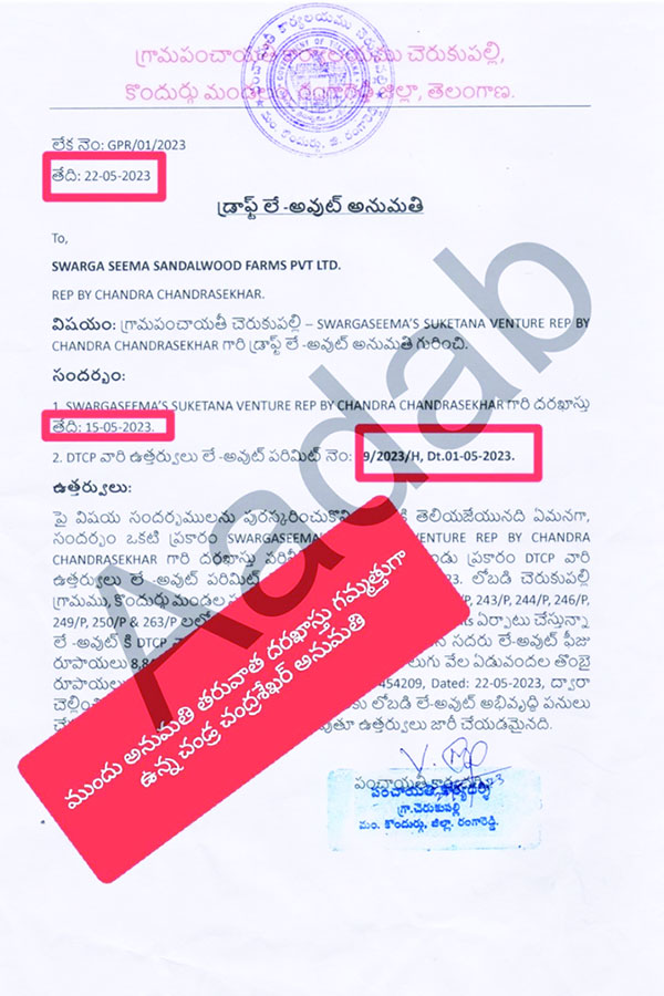 మాన్యువల్ గా లే అవుట్ అనుమతి పొంది, తరువాత లే అవుట్ అనుమతి కోసం దరఖాస్తు చేసుకున్న చండ్ర చంద్రశేఖర్..