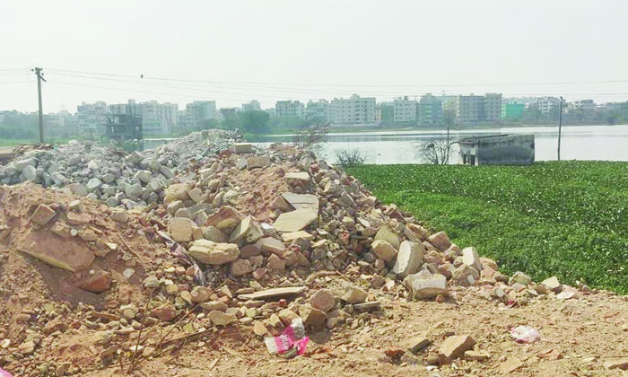 - మట్టితో చెరువును పూడ్చి అక్రమ నిర్మాణాలు చేస్తున్న కృష్ణంరాజు..