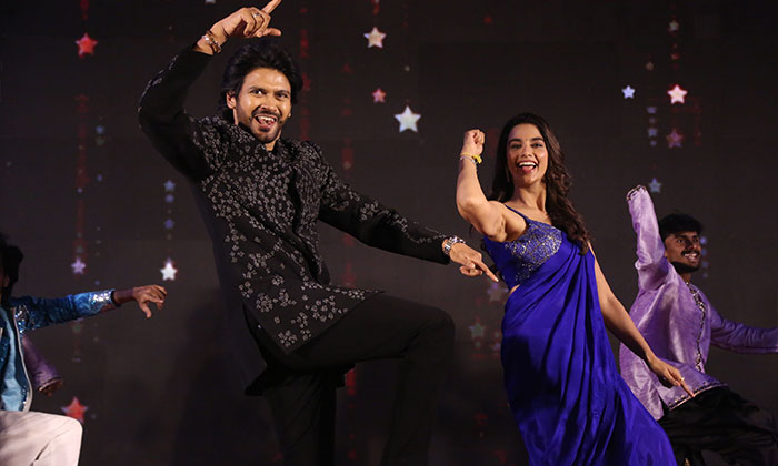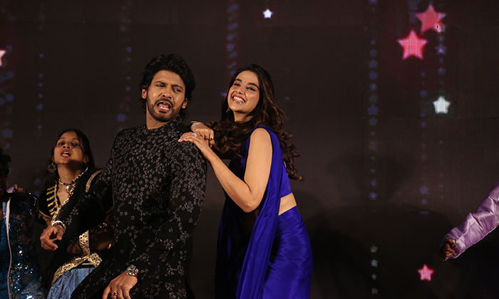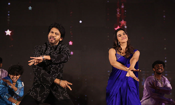 నాయకానాయికలు నవీన్ పొలిశెట్టి, మీనాక్షి చౌదరి ‘అనగనగా ఒక రాజు’ చిత్రంలోని ‘భీమవరం బాల్మా’, ‘రాజు గారి పెళ్లిరో’ పాటలకు వేదికపై నృత్యం చేసి అందరిలో ఉత్సాహం నింపారు. అనంతరం అతిథులందరికీ స్వాగతం పలికి, నిజంగానే పెళ్లి రిసెప్షన్ వేడుకను తలపించారు. ఇక నవీన్ పొలిశెట్టి, మీనాక్షి చౌదరి నూతన వధూవరులులా వేదికపై కనిపించడం ప్రత్యేక ఆకర్షణగా నిలిచింది. పాత్రికేయలు బంధుమిత్రుల్లా ఒక్కొక్కరిగా వేదికపైకి వచ్చి.. ఆ జంటను ఆశీర్వదించడం, గిఫ్ట్ కవర్ ఇచ్చి వారిని ఓ ప్రశ్న అడగటం.. ఇలా ఎంతో కొత్తగా, సరదాగా ఈ వేడుక నడిచింది.