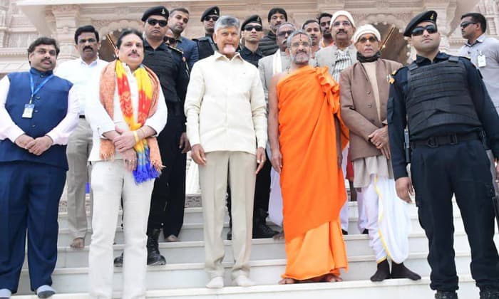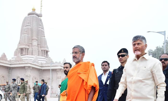 ఏపీ సీఎం చంద్రబాబు(AP CM Chandrababu) ఆదివారం అయోధ్యకు వెళ్లారు. అక్కడికి చేరుకున్న ఆయనకు యూపీ, అయోధ్య దేవాలయ అధికారులు ఘన స్వాగతం(Grand Welcome) పలికారు. అనంతరం.. దివ్యమైన, అద్భుతమైన శ్రీరామ జన్మభూమి మందిర్(Sri Rama Janmabhoomi Mandir)లో దైవ దర్శనం చేసుకొని ప్రార్థనలు(Prayers) చేశారు. మరోసారి ఇక్కడకు రావడం ప్రశాంతమైన, ఆధ్యాత్మికంగా ఉత్తేజకరమైన అనుభవమని పేర్కొన్నారు. శ్రీరాముడి విలువలు, ఆదర్శాలు మనందరికీ శాశ్వతమైన పాఠాలని చెప్పారు. అవి ఎల్లప్పుడూ మనల్ని నడిపిస్తూ, ప్రేరేపిస్తూ ఉండాలని కోరుకుంటున్నట్లు తెలిపారు.
