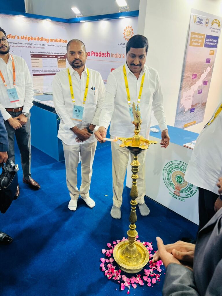 “ఇండియా మారిటైమ్ వీక్(IMW)–2025” కార్యక్రమంలో ఏపీ పెట్టుబడులు, మౌలిక సదుపాయాల శాఖ మంత్రి బీసీ జనార్థన్ రెడ్డి (BC Janardhan Reddy) పాల్గొన్నారు. ముంబైలోని NESCO ఎగ్జిబిషన్ సెంటర్లో కేంద్ర ఓడరేవులు, షిప్పింగ్ & జల మార్గాల మంత్రిత్వ శాఖ ఈ కార్యక్రమాన్ని నిర్వహిస్తోంది. ఇందులో భాగంగా రాష్ట్ర ప్రభుత్వం ఏర్పాటుచేసిన “ఆంధ్రప్రదేశ్ రాష్ట్ర సెషన్”(AP STATE SESSION)ను జ్యోతి ప్రజ్వలన చేసి ప్రారంభించారు.