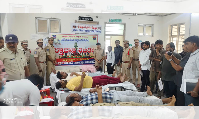 ఖాకీ గుండెల మాటున కరకు ధనమే కాదు.. సామాజిక శ్రేయస్సుకు పాటుపడే గుణం ఉందంటూ చాటారు మిర్యాలగూడ పోలీసులు. పోలీస్ అమరవీరుల సంస్మరణ వారోత్సవాలలో భాగంగా డిఎస్పీకే రాజశేఖర్ రాజు ఆధ్వర్యంలో బుధవారం పట్టణంలోని ఏరియా ఆసుపత్రిలో రక్తదాన శిబిరం ఏర్పాటు చేశారు. ప్రజారక్షణలో నిరంతరం పనిచేసే పోలీసులు విధి నిర్వహణతో పాటు రక్తదానం చేసి, మరికొందరికి ప్రాణదాతలుగా మారటానికి సిద్ధమయ్యారు. వారి స్ఫూర్తి కి తాము కూడా సై అంటూ యువకులు తరలివచ్చి రక్తదానం చేశారు. సబ్ డివిజన్ పరిధిలోని సిఐలు ఎస్ఐలు సిబ్బంది పలువురు ఉత్సాహంగా రక్తదానాన్ని చేశారు.