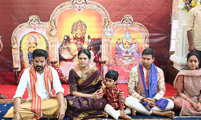 అనంతరం ముఖ్యమంత్రి కుటుంబ సభ్యులతో కలిసి శ్రీ జ్ఞాన సరస్వతి అమ్మవారిని దర్శించుకుని ప్రత్యేక పూజలు నిర్వహించారు. ముఖ్యమంత్రి మనవడికి అక్షరాభ్యాసం చేయించారు. అనంతరం సమీపంలోని మహాలక్ష్మి అమ్మవారి ఆలయంలో కూడా ప్రత్యేక పూజలు చేశారు. వేద పండితులు ఆశీర్వచనాలు అందజేసి తీర్థప్రసాదాలు సమర్పించారు.