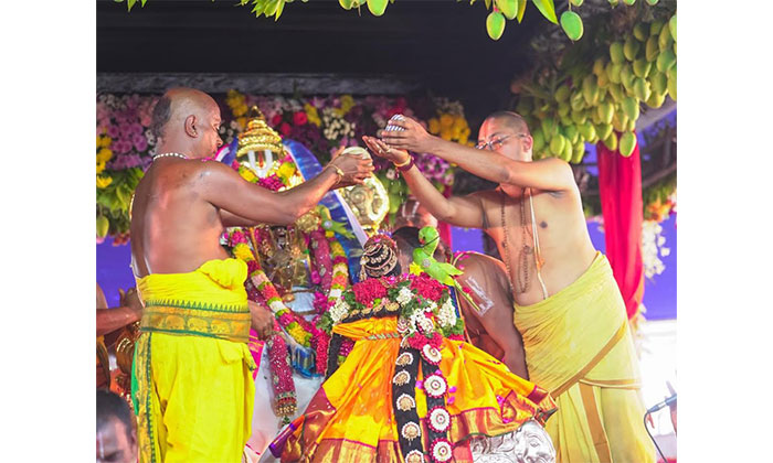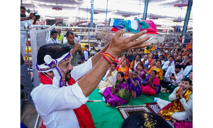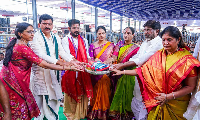 రాష్ట్ర ప్రభుత్వం తరపున స్వామివారికి పట్టు వస్త్రాలు, ముత్యాల తలంబ్రాలు సమర్పించిన ముఖ్యమంత్రి రేవంత్ రెడ్డి.
