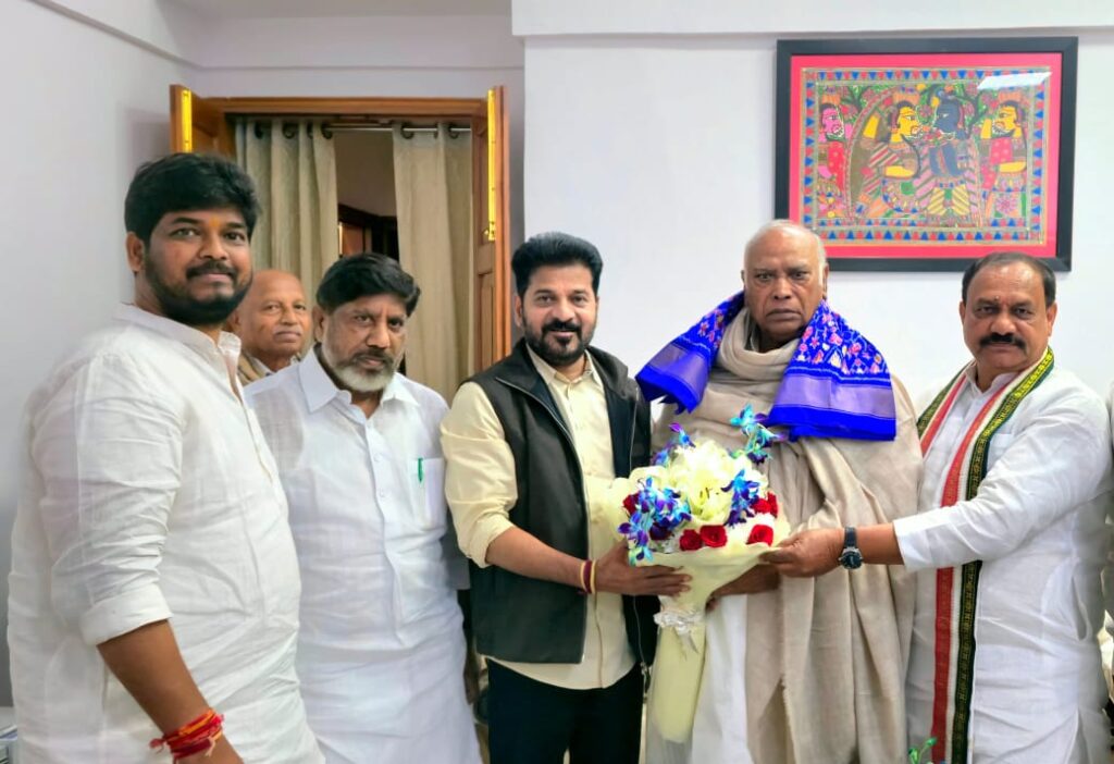 రేవంత్, మీనాక్షీ నటరాజన్, మహేష్ కుమార్ గౌడ్, భట్టి విక్రమార్క, నవీన్ యాదవ్, రోహిన్ రెడ్డి తదితరులు ఏఐసీసీ అధ్యక్షుడు మల్లికార్జున్ ఖర్గే(Mallikarjun Kharge)ని కూడా మర్యాదపూర్వకంగా కలిశారు.