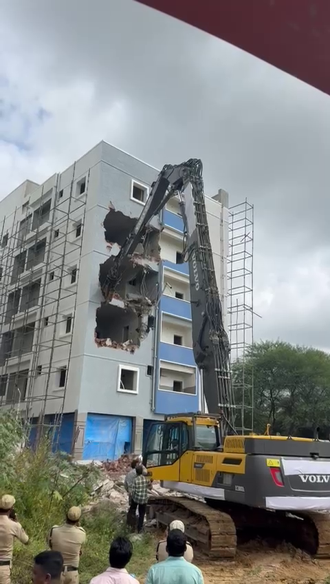 శేర్లింగంపల్లి మండల పరిధిలోని మియాపూర్ సర్వే నెంబర్ 100లో ప్రభుత్వ భూములను ఆక్రమించి నిర్మించిన అక్రమ కట్టడాలను హైడ్రా అధికారులు శనివారం కూల్చివేస్తున్నారు . ప్రభుత్వ భూములను ఆక్రమించుకుని బలమైన కాంక్రీట్ నిర్మాణాలు చేపట్టినట్టు ఫిర్యాదులు రావడంతో అధికారులు తక్షణమే సిబ్బందితో కలిసి చర్యలు చేపట్టారు. జేసీబీల సాయంతో కట్టడాలను నేలమట్టం చేశారు. ప్రభుత్వ భూములను ఎవరూ ఆక్రమించరాదని, ఇలాంటి చర్యలు కొనసాగుతాయని అధికారులు హెచ్చరించారు.