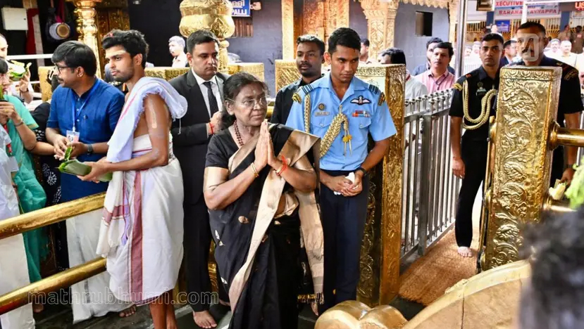 రాష్ట్రపతి ద్రౌపది ముర్ము (Droupadi Murmu) కేరళ పర్యటనలో భాగంగా ప్రముఖ పుణ్యక్షేత్రం శబరిమల(Sabarimala)కు చేరుకున్నారు. ఇరుముడితో స్వామి వారిని దర్శించుకున్నారు. రాష్ట్రపతి కోసం అధికారులు నిబంధనలను సడలించారు. వాహనాల్లో శబరిమల చేరుకునేలా ఏర్పాట్లుచేశారు. అంతకుముందు శబరిమలకు వెళ్తున్న క్రమంలో రాష్ట్రపతి పెద్ద ప్రమాదం నుంచి తప్పించుకున్నారు. అయ్యప్ప స్వామి(Ayyappa Swami)ని దర్శించుకునేందుకు ఆమె హెలికాప్టర్లో ప్రయాణించారు. రాజీవ్ గాంధీ ఇండోర్ స్టేడియంలో హెలికాప్టర్ ల్యాండ్ అవుతున్న సమయంలో ఒక్కసారిగా హెలిప్యాడ్ కుంగిపోయింది. హెలికాప్టర్ చక్రం హెలిప్యాడ్ కాంక్రీట్లో కూరుకుపోయింది. అధికారులు వెంటనే స్పందించి సమస్యను సరిచేశారు.