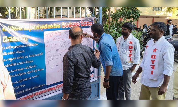 భారత ప్రజాతంత్ర యువజన సమాఖ్య హైదరాబాద్ జిల్లా కమిటీ ఆధ్వర్యంలో జాబ్ క్యాలెండర్ విడుదల చేయాలని చిక్కడపల్లి సిటీ సెంట్రల్ లైబ్రరీ వద్ద సంతకాల సేకరణ కార్యక్రమం నిర్వహించడం జరిగింది. ఈ సందర్బంగా జావీద్ మాట్లాడుతూ కాంగ్రెస్ ప్రభుత్వం అధికారంలోకి రాక ముందు నిరుద్యోగులందరికి ఉద్యోగ ఉపాధి అవకాశాలు కల్పిస్తామని జాబ్ క్యాలెండర్ ప్రకటించి, నోటిఫికేషన్లు వేసి ఉద్యోగాలను భర్తీ చేస్తామని ఎన్నికల మేనిఫెస్టోలో యూత్ డిక్లరేషన్ ని ప్రకటించడం జరిగింది. జాబ్ క్యాలెండర్ నామమాత్రంగా ప్రకటించడం జరిగింది .ఇప్పటివరకు ఆ జాబ్ క్యాలెండర్ ప్రకారం ఏ ఒక్క నోటిఫికేషన్ వెయ్యలేదు.