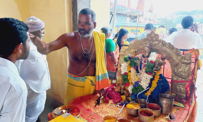 - రాజగోపురంలో దుర్గామాతకు పూజలు