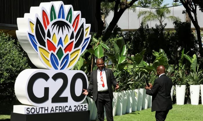 G20 సదస్సు దక్షిణాఫ్రికా(South Africa)లోని జొహన్నెస్బర్గ్(JOHANNESBURG)లో శనివారం ప్రారంభమైంది. ఈ కార్యక్రమాన్ని అమెరికా అధ్యక్షుడు (America President) డొనాల్డ్ ట్రంప్ (Donald Trump) బాయ్కాట్(Boy Cotting) చేశారు. దక్షిణాఫ్రికా ప్రాధాన్యతలు (ముఖ్యంగా.. వాణిజ్యం, వాతావరణ చర్యలపై ప్రపంచ సహకారాన్ని పెంచడం) అమెరికా విధానానికి విరుద్ధంగా ఉన్నాయని ఆయన ప్రభుత్వం చెబుతోంది. ఈ నేపథ్యంలో G20 సదస్సును బహిష్కరించారు.