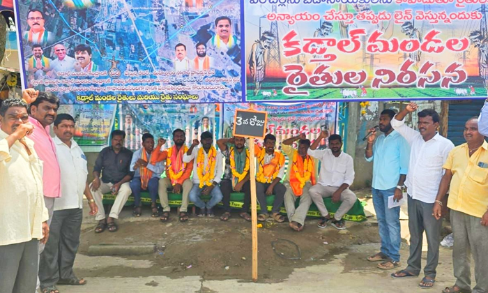 రంగారెడ్డి జిల్లా కడ్తాల్ మండల కేంద్రంలో చేపట్టిన నిరాహారదీక్షలు మూడవ రోజు కూడా కొనసాగాయి. మూడవ రోజు బాధిత రైతులు కడ్తాల్ గ్రామానికి చెందిన కాంటేకార్ శ్రీనివాస్, మూడ గణేష్, మక్త మాదారం గ్రామానికి చెందిన బండి నాగేష్, పచ్చిపాల శివకుమార్, మర్ల పవన్ లు నిరాహారదీక్షలో పాల్గొన్నారు. ఈ సందర్భంగా రైతులు మాట్లాడుతూ పవర్ గ్రిడ్ అధికారులు నిబంధనలకు విరుద్ధంగా వేస్తున్న బీదర్ నుండి మహేశ్వరం 765 కేవీ హైటెన్షన్ లైన్ ను మార్చాలని కోరారు. తెలంగాణ రాష్ట్ర ప్రభుత్వం అత్యంత ప్రతిష్టాత్మకంగా చేపట్టిన ఫుచర్ సిటీలో భాగమైన కడ్తాల్ పట్టణం భవిష్యత్తులో అభివృద్ధికి ఆటంకంగా మారుతుందని తెలిపారు. పవర్ గ్రిడ్ అధికారులు రైతులకు ఎలాంటి సమాచారం ఇవ్వకుండా, అలైన్ మెంట్ యొక్క వివరాలు గోప్యంగా ఉంచుతూ వారి ఇష్టారీతిన వేసుకుంటూ ఇక్కడి పెద్ద వెంచర్లను కాపాడుతూ పేద చిన్న సన్న కారు రైతుల పచ్చని పొలాల గుండా వేస్తూన్నారని వాపోతున్నారు. ఇప్పటికైనా అధికారులు, ప్రజాప్రతినిధులు రైతుల సమస్యను పరిష్కరించాలని ఈ సందర్భంగా కోరారు. ఈ కార్యక్రమంలో రైతులకు సంఘీభావంగా సీఐటీయూ మండల కన్వీనర్ పెంటయ్య, ఎమ్మార్పీఎస్ మండలాధ్యక్షుడు సిద్దిగారి దాసు, కడ్తాల్ మాజీ ఉపసర్పంచ్ కడారి రామకృష్ణ, గూదే రాజేందర్ యాదవ్, గంట శ్రీనివాస్, సీహెచ్.మహేష్, క్యామ రాజేష్, బోసు రవి, గోరేటి కృష్ణ, శ్రీరాములు గౌడ్, క్యామ వెంకటేష్, వెంకట్రాములు గౌడ్ తదితరులు పాల్గొన్నారు.