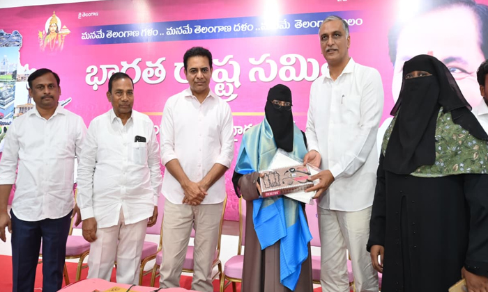 జహీరాబాద్లోని తెలంగాణ మైనారిటీ గురుకుల పాఠశాల(TMREIS)లో చదివి ఎంబీబీఎస్ (MBBS) సీట్ పొందిన విద్యార్థులను బీఆర్ఎస్ వర్కింగ్ ప్రెసిడెంట్ కేటీఆర్(KTR), మాజీ మంత్రి & ఎమ్మెల్యే హరీష్ రావు (Harish Rao) ఆదివారం హైదరాబాద్లోని పార్టీ ఆఫీసు తెలంగాణభవన్(Telangana Bhavan)లో సన్మానించారు. విద్యార్థులతోపాటు వారి తల్లిదండ్రులను శాలువాతో సత్కరించారు(Fecilitaion).