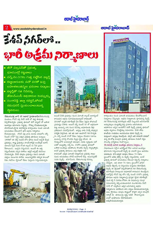 ఇటీవల కేశవనగర్ లో అనుమతి లేకుండా నిర్మిస్తున్న భవనం గోడ కూలి పక్కనే నివసిస్తున్న దంపతులకు గాయాలయ్యాయి. ఇంటిపై గోడ పడటంతో ఇల్లు పూర్తిగా ధ్వంసమైంది. నాసిరకం నిర్మాణాలతో, ప్రజల ప్రాణాలకు ముప్పు ఏర్పడుతోందని స్థానికులు ఆందోళన వ్యక్తం చేస్తున్నారు.