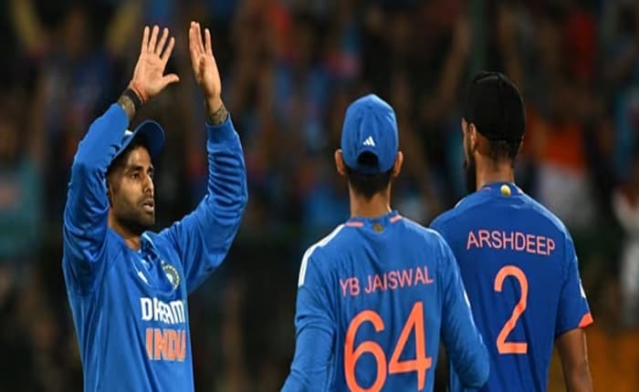 కటక్(ఒడిశా)లోని బారాబటి మైదానంలో సౌతాఫ్రికా(South Africa)తో జరిగిన తొలి టీ20 మ్యాచ్లో టీమిండియా (Team India) 101 రన్నుల తేడాతో ఘన విజయం (Grand Victory) సాధించింది. మన దేశం నిర్దేశించిన 176 పరుగుల లక్ష్యాన్ని ఛేదించే క్రమంలో దక్షిణాఫ్రికా 12.3 ఓవర్లలో 74 రన్నులు మాత్రమే చేసి ఆలౌట్ అయింది. దీంతో 5 మ్యాచ్ల ఈ సిరీస్లో టీమిండియా 1-0 తేడాతో ఆధిపత్యం (Lead) సంపాదించింది.