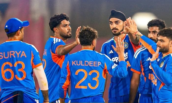 తిరువనంతపురం(Thiruvananthapuram)(కేరళ)లో శనివారం న్యూజిలాండ్(newzealand)తో జరిగిన ఐదో టీ20 మ్యాచ్లోనూ ఇండియా ఘన విజయం(India win) సాధించింది. దీంతో 5 మ్యాచ్ల సిరీస్ను 4-1 తేడాతో కైవసం చేసుకుంది. తొలుత బ్యాటింగ్ చేసిన మన దేశం 271 పరుగులు చేసింది. 272 రన్నుల టార్గెట్ను ఛేదించేందుకు బరిలోకి దిగిన కివీస్.. 19.4 ఓవర్లలో 225 పరుగులు మాత్రమే చేసి ఆలౌట్ అయింది. దీంతో 46 రన్నుల దూరంలో ఓడిపోయింది. మన టీమ్లో ఇషాన్ కిషన్ సెంచరీ చేశాడు. 43 బంతుల్లోనే 103 పరుగులు తీశాడు. సూర్యకుమార్ 63, హార్దిక్ పాండ్య 42, అభిషేక్ శర్మ 30 రన్నులు చేశారు. న్యూజిలాండ్ బౌలర్లలో జాకబ్, కైలె, మిచెల్ చెరో వికెట్, ఫెర్గుసన్ 2 వికెట్లు నేలకూల్చారు. న్యూజిలాండ్ బ్యాటర్లలో ఫిన్ అల్లెన్ 80, సోధి 33, రచిన్ 30 పరుగులు తీశారు. మన బౌలర్లలో అర్షదీప్ 5 వికెట్లను తన ఖాతాలో వేసుకున్నాడు. అక్షర్ పటేల్ 3, వరుణ్ 1, రింకూ 1 వికెట్ తీశారు.