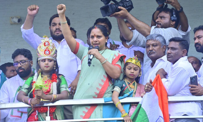 తెలంగాణ జాగృతి (Telangana Jagruthi) అధ్యక్షురాలు, ఎమ్మెల్సీ (Mlc) కల్వకుంట్ల కవిత (Kalvakuntla Kavitha) ‘జాగృతి జనం బాట’ (Jagruthi Janam Bata) కార్యక్రమాన్ని ఇవాళ నిజామాబాద్(Nizamabad)లో ప్రారంభించారు. ఈ సందర్భంగా ఆమె మాట్లాడుతూ.. నిజామాబాద్ జిల్లా తన మెట్టినిల్లు అని చెప్పారు. ఎంపీ(Mp)గా, ఎమ్మెల్సీ(Mlc)గా తనకు పట్టం కట్టి తన రాజకీయ జీవితానికి శ్రీకారం చుట్టిన జిల్లా ఇది అని తెలిపారు. ప్రజల కష్టసుఖాలు తెలుసుకోవడానికి ఇక్కడి నుంచే “జాగృతి జనం బాట”ను ప్రారంభించడం సముచితంగా భావించానని పేర్కొన్నారు.
