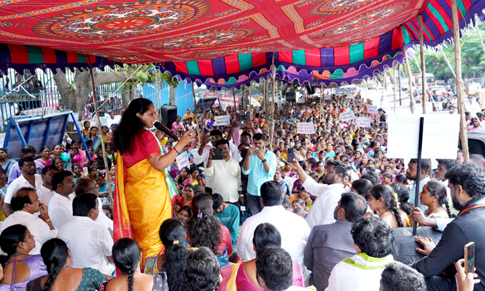 వీవోఏల హక్కుల సాధన కోసం లాఠీ దెబ్బలు తినేందుకైనా సిద్ధమని తెలంగాణ జాగృతి (Telangana Jagruthi) అధ్యక్షురాలు కల్వకుంట్ల కవిత అన్నారు. ఇందిరాపార్క్ లోని ధర్నా చౌక్ లో వీవోఏలు చేపట్టిన ధర్నాలో ముఖ్య అతిథిగా పాల్గొని మాట్లాడారు. మొన్నటి ఎన్నికల్లో కాంగ్రెస్ నాయకులు VOA(విలేజ్ ఆర్గనైజేషన్ అసిస్టెంట్)లకు 26 వేలు జీతం పెంచుతామని హామీ ఇచ్చారని గుర్తుచేశారు. అసలు అధికారంలోకి వస్తామని వారికే నమ్మకం లేకుండెనని, అందుకే ఇష్టానుసారం హామీలు ఇచ్చారని విమర్శించారు. అనుకోకుండా తప్పుదారిన అధికారంలోకి వచ్చారని ఎద్దేవా చేశారు. ఇప్పుడు రేవంత్ రెడ్డి(Revanth)కి ఇచ్చిన హామీలు గుర్తు లేవని కవిత మండిపడ్డారు.