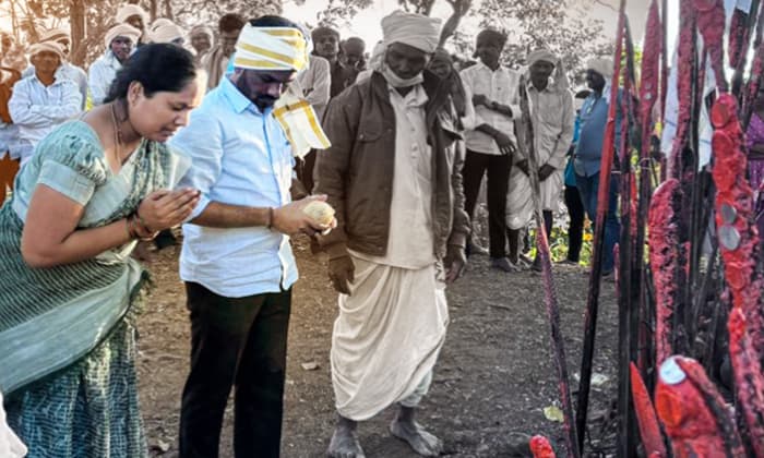 నిర్మల్ జిల్లా కాంగ్రెస్ పార్టీ అధ్యక్షుడు(Nirmal Dcc Chief), ఖానాపూర్ ఎమ్మెల్యే(Khanapur Mla) వెడ్మ బొజ్జు పటేల్(Vedma Bojju Patel).. డెమ్మేలా రాజులగుట్ట(Demmela Rajula Gutta)లో కుటుంబ సభ్యుల(Family Members)తో కలిసి మొక్కులు చెల్లించుకున్నారు. ఉట్నూర్ మండలం దామనపేట నర్సాపూర్ జేలో 25 ఏళ్ల తర్వాత ఈ పవిత్ర గుట్టలో ఎమ్మెల్యే అడుగుపెట్టడం గమనార్హం. శాసన సభ్యుడు.. స్థానిక ఆదివాసీ నాయకులు, సర్పంచ్లు, గ్రామ పెద్దలతో కలిసి సంప్రదాయ పూజలు నిర్వహించారు. ఈ సందర్భంగా ఎమ్మెల్యే మాట్లాడుతూ ఆదివాసుల సంస్కృతి, సంప్రదాయాలు పవిత్రమైనవని తెలిపారు. అడవుల్లో నివసించే ఆదివాసీ దేవతలకు సామూహిక హక్కుల కింద పట్టాలు ఇవ్వాలని కోరారు.