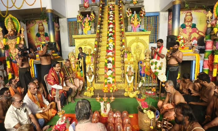 మహబూబ్నగర్(Mahabubnagar) పట్టణంలోని పద్మావతి కాలనీలో జరిగిన మహా పడిపూజ(Maha Padipuja)లో ఎమ్మెల్యే యెన్నం శ్రీనివాస్ రెడ్డి(MLA Yennam Srinivas Reddy) పాల్గొన్నారు. అయ్యప్ప స్వామి(Ayyappa Swami) అనుగ్రహంతో మహబూబ్నగర్ జిల్లా అన్ని రంగాల్లో సమగ్ర అభివృద్ధి సాధించాలని ప్రార్థించినట్లు పేర్కొన్నారు. అయ్యప్ప స్వామి మహిమతో మనసులన్నీ ఒక్కటవుతాయని చెప్పారు. 41 రోజుల దీక్షతో మాలధారణ(Maladharana) చేసిన ప్రతి వ్యక్తి అయ్యప్ప స్వామి స్వరూపమేనని తెలిపారు. నియమం, నిష్ఠ, సమానత్వ భావనలతో సన్మార్గంలో నడిపించే ఈ దీక్ష యువతకు ఆదర్శమని అన్నారు. ఈ కార్యక్రమంలో TPCC ప్రధాన కార్యదర్శి మిథున్ రెడ్డి, మహబూబ్నగర్ ఫస్ట్ పర్యవేక్షకులు గుండా మనోహర్, DCC ప్రధాన కార్యదర్శి సిరాజ్ ఖాద్రీ, అయ్యప్ప భక్త సమాజం భగవంత్ రెడ్డి గురుస్వామి, పంబ రాజు గురుస్వామి, ఆలయ కమిటీ ప్రతినిధులు, దీక్ష స్వాములు, భక్తులు పాల్గొన్నారు.