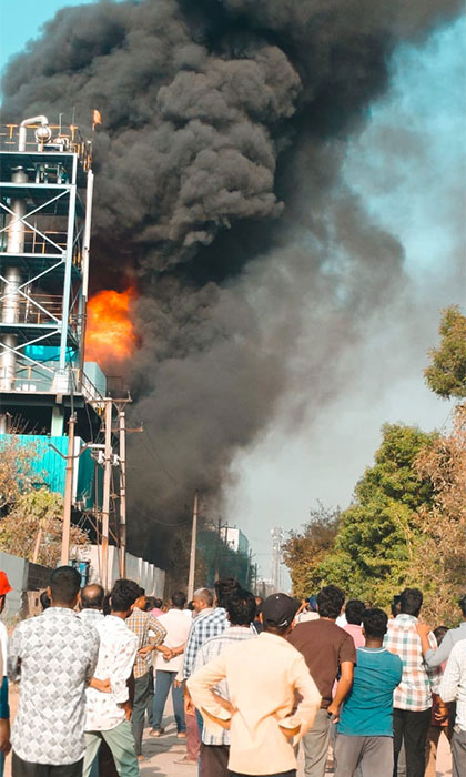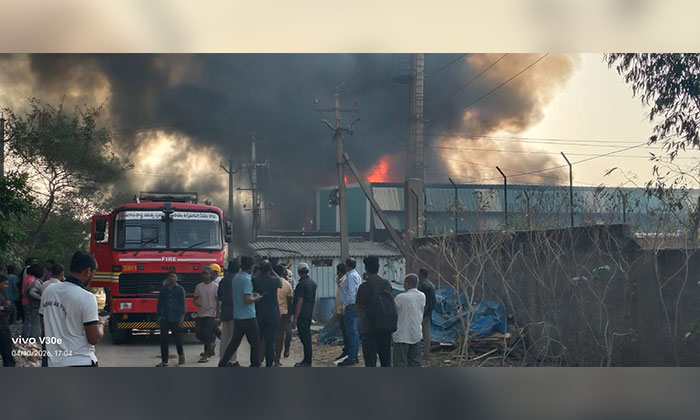 పటాన్చెరు జిన్నారం మండలం గడ్డపోతారం పారిశ్రామిక వాడలో బారి అగ్ని ప్రమాదం చోటు చేసుకుంది ఎలాంటి ప్రాణ నష్టం జరగలేదు మంటలర్పుతున్న అగ్నిమాపక సిబ్బంది .