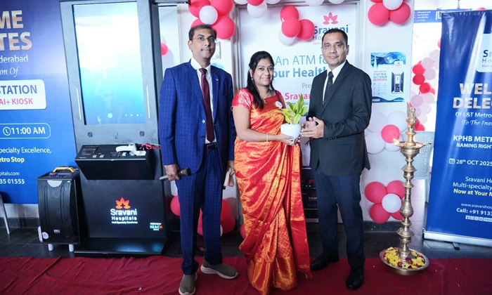 హైదరాబాద్: ఎల్ అండ్ టీ మెట్రో రైల్ లిమిటెడ్(L and T Metro Rail Limited)తో శ్రావణి హాస్పిటల్స్ (Sravani Hospitals) ఇవాళ కీలక ఒప్పందం కుదుర్చుకుంది. దీని ప్రకారం కేపీహెచ్బీ కాలనీ మెట్రో స్టేషన్ (Kphb Colony Metro Station) పేరు ఇకపై “శ్రావణి హాస్పిటల్స్–కేపీహెచ్బీ కాలనీ మెట్రో స్టేషన్”గా మారనుంది. ఈ సందర్భంగా శ్రావణి హాస్పిటల్స్ అధ్యక్షుడు డా.నవీన్ చెట్టుపల్లి, వ్యవస్థాపకురాలు & సీఈఓ శ్రావణి చెట్టుపల్లి, ఎల్ అండ్ టీ మెట్రో రైల్ లిమిటెడ్ సెక్యూరిటీ హెడ్ లోకేష్ సక్సేనా కొత్త పేరు పెట్టిన స్టేషన్ను ప్రారంభించారు. ప్రయాణికులు తమ ఆరోగ్య వివరాలను వెంటనే చూసుకునేందుకు వీలుగా ఉన్న ఏఐ (Artificial Intelligence) హెల్త్ కియోస్క్(Health Kiosk)ను కూడా అందుబాటులోకి తెచ్చారు.