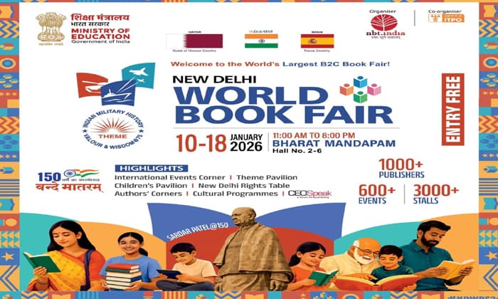 ప్రపంచంలోనే అతిపెద్ద పుస్తక ప్రదర్శన(World’s Largest Book Fair)ను న్యూఢిల్లీలో ఏర్పాటుచేశారు. న్యూఢిల్లీ వరల్డ్ బుక్ ఫెయిర్(New Delhi World Book Fair-NDWBF)-2026.. జనవరి 10 నుంచి 18 వరకు జరుగుతుంది. భారత్ మండపంలో ఈ కార్యక్రమాన్ని కేంద్ర విద్యా శాఖ మంత్రి(Union Minister for Education) ధర్మేంద్ర ప్రధాన్ (Dharmendra Pradhan) ప్రారంభిస్తారు. NDWBFకి సంబంధించి ఇది 53వ ఎడిషన్. నేషనల్ బుక్ ట్రస్ట్(National Book Trust) ఆధ్వర్యంలో జరుగుతున్న ఈ బుక్ ఫెయిర్‌కి తొలిసారిగా ఉచిత ప్రవేశం కల్పిస్తున్నారు. ఇందులో 35 దేశాల నుంచి వెయ్యి మందికి పైగా పబ్లిషర్లు పాల్గొంటున్నారు. 3 వేలకు పైగా స్టాల్స్, 600 లిటరరీ, కల్చరల్ ఈవెంట్లు నిర్వహిస్తారు. వెయ్యి మందికిపైగా స్పీకర్లు పాలుపంచుకుంటారు. ఈ ఏడాది థీమ్: Indian Military History: Valour & amp; Wisdom @ 75.