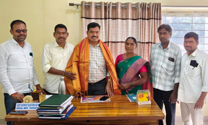 వరంగల్ జిల్లా పర్వతగిరి మండలంలో ఇటీవల జరిగిన స్థానిక సంస్థల ఎన్నికల్లో సర్పంచిగా గెలుపొందిన వడ్లకొండ గ్రామ నూతన సర్పంచ్ దంపతులు డెక్క సునిత -కుమారస్వామి స్థానిక మండల అధికారులు తహసీల్దార్ టీ.వెంకటస్వామి, ఎంపీడీఓ మాలోత్ శంకర్ నాయక్, ఏపిఓ సుశీల్ కుమార్ లను మర్యాదపూర్వకంగా కలిసి వారిని శాలువాలతో సన్మానించారు.