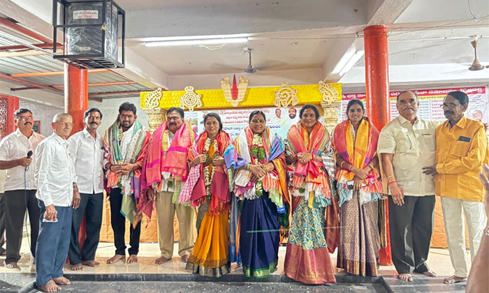 ఇటీవల జరిగిన కరీంనగర్ మున్సిపల్ నగర పాలక సంస్థ ఎన్నికలలో గెలుపొందిన పద్మశాలి కార్పొరేటర్లను కొత్తపల్లి పద్మశాలి సంఘం , కొత్తపల్లి మార్కండేయ దేవాలయ అభివృద్ధి కమిటీ కొత్తపల్లి పద్మశాలి యువజన సంఘం కమిటీ ఆధ్వర్యంలో ఘనంగా సన్మాన కార్యక్రమాన్ని నిర్వహించారు. పద్మశాలి సామాజిక వర్గానికి చెందిన కార్పొరేటర్లు అయిన వాసాల రమేష్ వేముల కవిత చంద్రశేఖర్ చొప్పరి జయశ్రీ తెల్ల లక్ష్మి రమేష్ దేవసాని సరస్వతి సత్యనారాయణ మాసం గణేష్ లను ఈ సందర్భంగా ఘనంగా సన్మానించారు . కార్యక్రమానికి కరీంనగర్ జిల్లా పద్మశాలి సంఘం అధ్యక్షులు మెతుకు సత్యం పద్మశాలి సంఘం ట్రస్ట్ అధ్యక్షులు స్వర్గం మల్లేశం పోప అధ్యక్షులు పోలు సత్యనారాయణ లు ముఖ్య అతిథులుగా హాజరైనారు.