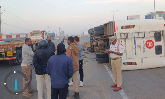 • సినిమా షూటింగ్ కు వెళ్తున్న బస్సు బోల్తా