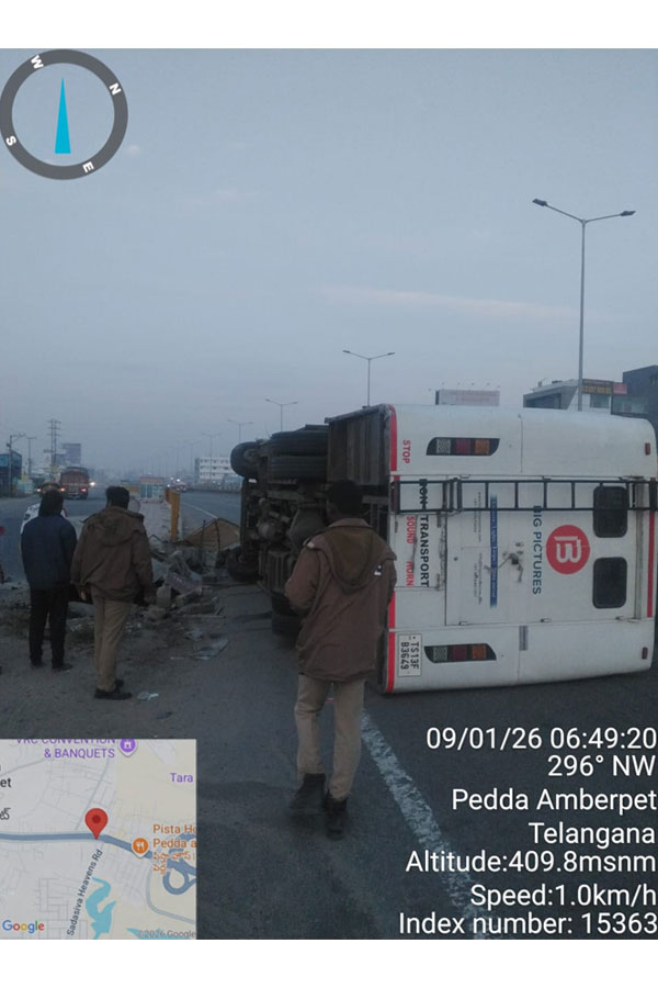 బిగ్ పిక్చర్స్ కు చెందిన TS13FB3649 నెంబర్ గల బస్సు విశాఖపట్నం నుండి బయలుదేరి మణికొండకు వెళుచుండగా పెద్ద అంబర్పేట ఫ్లైఓవర్ స్టార్టింగ్ లో డివైడర్ను ఢీకొని బోల్తా కొట్టడం జరిగింది. ఇట్టి ప్రమాదంలో డ్రైవర్ బీరం విజయ భాస్కర్ రెడ్డి తండ్రి నర్సిరెడ్డి మరియు ఎలక్ట్రిషన్ పుట్టా బీసన్న తండ్రి బీసన్న మాత్రమే బస్సులో ఉన్నారు. డ్రైవర్ విజయ్ కి ఎడమ చేతికి స్వల్ప గాయం కావడం జరిగింది. ఎలాంటి ప్రాణ నష్టం జరగలేదు