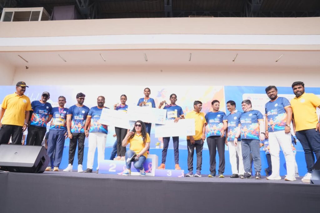 గ్రేస్ క్యాన్సర్ ఫౌండేషన్(Grace Cancer Foundation) ఆధ్వర్యంలో ఆదివారం హైదరాబాద్లోని గచ్చిబౌలి స్టేడియం దగ్గర గ్లోబ్ గ్రేస్ క్యాన్సర్ రన్(Globe Grace Cancer Run) నిర్వహించారు. ఈ రన్లో మంత్రులు పొన్నం ప్రభాకర్, శ్రీధర్ బాబు, వాకిటి శ్రీహరి, ప్రభుత్వ సలహాదారు వేం నరేందర్ రెడ్డి, షాట్ చైర్మన్ శివసేన రెడ్డి పాల్గొన్నారు. ఈ కార్యక్రమానికి పెద్దఎత్తున విద్యార్థులు, యువత హాజరై.. 2కె, 5కె పరుగులో పాల్గొన్నారు. కాన్సర్పై అవగాహన కల్పించేందుకు ఈ పరుగు నిర్వహించిన నిర్వాహకులను మంత్రులు అభినందించారు. ఈ సందర్బంగా మంత్రి పొన్నం ప్రభాకర్(Ponnam Prabhakar) మాట్లాడుతూ.. ప్రతి ఒక్కరికి క్యాన్సర్ పై అవగాహన కలిగి ఉండాలి.. రన్లో పాల్గొన్న విజేతలను అభినందించారు. మన జీవితం నుండి ప్లాస్టిక్ను దూరం చేసినప్పుడే క్యాన్సర్ ను నివారించవచ్చన్నారు. క్యాన్సర్ చికిత్స కు ప్రజాపాలన ప్రభుత్వం అన్ని రకాల చర్యలు తీసుకుంటుందని మంత్రి పొన్నం ప్రభాకర్ వెల్లడించారు.