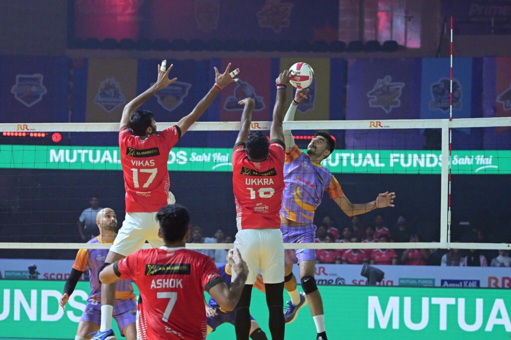 ఆట ప్రారంభంలో కాలికట్ హీరోస్ కెప్టెన్, సెట్టర్ మోహన్ ఉక్కరపాండియన్ మధ్యలోకి పాస్లు అందిస్తూ అటాకింగ్లో వైవిధ్యం చూపించే ప్రయత్నం చేశాడు. అయితే, ముంబై బ్లాకర్ అభినవ్ సలార్ గోడలా నిలిచి కాలికట్ దాడులను సమర్థవంతంగా అడ్డుకున్నాడు. ఆట మధ్యలో ఉక్కరపాండియన్ చేసిన డబుల్ టచ్ తప్పిదం ముంబైకి కీలకమైన సూపర్ పాయింట్ను అందించింది. దీంతో ముంబై తొలి సెట్ నెగ్గి ఆధిక్యంలోకి వెళ్లింది.ఆ తర్వాత శుభమ్ చౌదరి తన పదునైన స్పైక్లతో కాలికట్ డిఫెన్స్కు ఏమాత్రం అవకాశం ఇవ్వలేదు. అతనికి మథియాస్ మథియాస్ లోఫ్ట్సెన్స్ కూడా తోడవడంతో ముంబై పాయింట్ల వేటలో దూసుకుపోయింది.