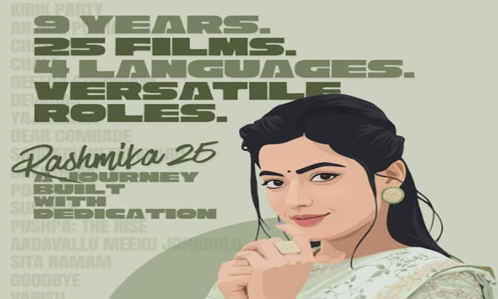 నేషనల్ క్రష్ రశ్మిక (Rashmika) ఇండియన్ ఫిలిం ఇండస్ట్రీలో 9 ఏళ్ల జర్నీ పూర్తిచేసుకుంది. ఈ సమయంలో 4 భాషల్లో మొత్తం 25 మూవీస్లో నటించింది. వీటిలో.. హిట్స్, సూపర్ హిట్స్, బ్లాక్ బస్టర్స్తోపాటు బాక్సాఫీస్ రికార్డులు తిరగరాసిన సినిమాలెన్నో ఉండటం విశేషం. హీరోయిన్లు లోకల్గా పేరు తెచ్చుకోవడం చూస్తుంటాం గానీ పాన్ ఇండియా (Pan India) స్థాయిలో వరుస విజయాలు సాధిస్తూ తన స్టార్ డమ్ క్రేజ్ చూపిస్తోంది రశ్మిక.