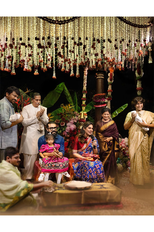 ఒక ట్విన్‌ను ఆప్యాయంగా ఎత్తుకున్న చిరంజీవి, ఉపాసన తండ్రి అనిల్ కామినేని పక్కన నిలుచుండగా, మరో బిడ్డను ప్రేమగా ఎత్తుకొని శోభన కామినేని కనిపించారు. సురేఖ కొణిదెల సహా కుటుంబ పెద్దల సమక్షంలో ఈ వేడుక అద్భుతంగా జరిగింది.