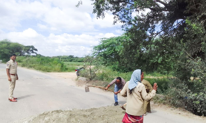 - ఎస్ఐ సొంత నిధులతో గుంతలు పడిన రోడ్డుకు మరమ్మతులు