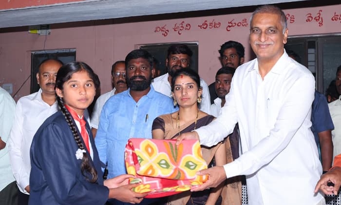 కాస్మెటిక్స్ ఛార్జీల(Cosmetics Charges)పై ఆర్థిక మంత్రితో మాట్లాడి వచ్చేలా చూస్తా. మీ నుంచి ఒక డాక్టర్, ఒక ఇంజనీర్, ఒక పబ్లిక్ సర్వేంట్ కావాలని నా కోరిక. తెలంగాణ రాకముందు ఒకటీ రెండు మెడికల్ కాలేజీలు మాత్రమే ఉండేవి. తెలంగాణ వచ్చాక 34 జిల్లాలకు 34 కాలేజీలను మంజూరు చేశాం. 2850 ఉన్న ఎంబీబీఎస్ సీట్లను 10 వేలకు పెంచాం. మీ రెసిడెన్షియల్ స్కూల్ అంటే నాకు ఎంతో ప్రేమ. త్వరలోనే మీకు నా సొంత డబ్బుతో వాటర్ హిటర్, లైబ్రరీ(Water Heater, Library) ఏర్పాటు చేస్తా’ అని హరీష్రావు హామీ ఇచ్చారు.