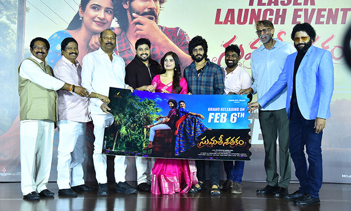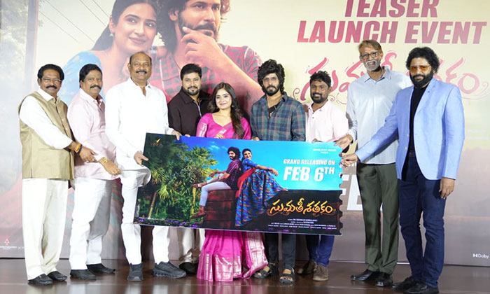 విషన్ మూవీ మేకర్స్ బ్యానర్ పై సాయి సుధాకర్ కొమ్మాలపాటి నిర్మాతగా ఎంఎం నాయుడు రచన దర్శకత్వంలో ప్రేక్షకుల ముందుకు రానున్న చిత్రం సుమతీ శతకం. అమర్దీప్ చౌదరి, శైలి చౌదరి జంటగా నటిస్తున్న ఈ చిత్రంలో టేస్టీ తేజ, మహేష్ విట్ట, JDV ప్రసాద్, ఆకెళ్ళ గోపి కృష్ణ, కిరణ్ విజయ్, మిర్చి కిరణ్, నెల్లూరు నీరజ, మలక్పేట్ శైలజ తదితరులు కీలక పాత్రలు పోషించారు. ఈ చిత్రానికి సుభాష్ ఆనంద్ సంగీతాన్ని అందించగా నహిద్ మహమ్మద్ ఎడిటింగ్ చేశారు. ఎస్ హలేష్ సినిమాటోగ్రాఫర్ గా చేశారు. ఫిబ్రవరి 6వ తేదీన ప్రేక్షకుల ముందుకు రానున్న ఈ చిత్ర టీజర్ ఆంధ్ర ప్రదేశ్ చీఫ్ విప్ జివి ఆంజనేయులు గారి చేతుల మీదగా లాంచ్ చేయడం జరిగింది.