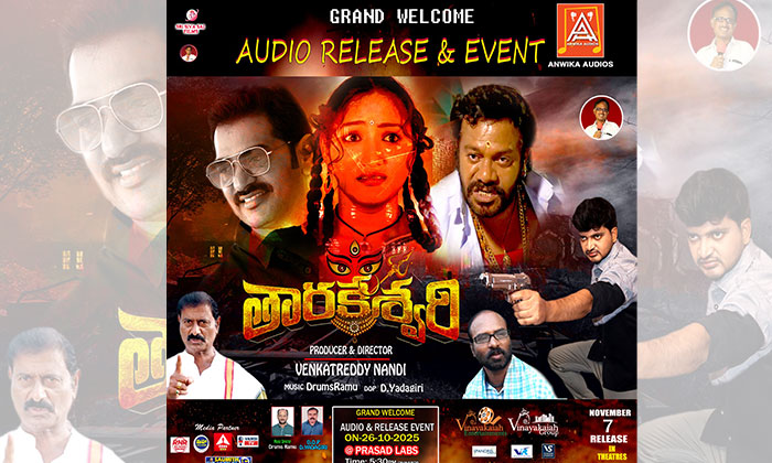 “గతేడాది నా దర్శకత్వంలో వచ్చిన ‘ఆదిపర్వం’ మంచి పేరు తెచ్చుకుంది. అమ్మవారి ఆశీర్వాదంతో ‘తారకేశ్వరి’ ఆడియోను మా అన్విక ఆడియో సంస్థ ద్వారా విడుదల చేయడం ఆనందంగా ఉంది. దర్శకుడు వెంకట్ రెడ్డి గారు అద్భుతంగా సినిమాను తీర్చిదిద్దారు. నటీనటులందరూ తమ టాలెంట్తో సినిమాకు బలాన్ని ఇచ్చారు. ఈ చిత్రం తప్పకుండా సూపర్హిట్ అవ్వాలని కోరుకుంటున్నాను” అన్నారు.