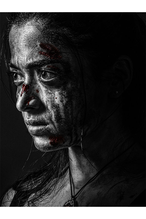 ఈ పోస్టర్లో రష్మిక గాయాలతో నిండిన, యుద్ధం చేసినట్లుగా కనిపించే లుక్లో కనిపిస్తోంది. ఆమె ముఖం మీద మట్టి, పొగ, రక్తపు మరకలు కనిపిస్తుండగా, ముక్కు, చెంపలు, నుదుటిపై ఉన్న గాయాలు ఆమె పాత్ర ఎదుర్కొన్న క్రూరత్వాన్ని స్పష్టంగా చూపిస్తున్నాయి. అయినప్పటికీ, ఆమె కళ్లలో కనిపించే ఆగ్రహం, తీవ్రత మాత్రం ఏమాత్రం తగ్గలేదు. ఆ పాత్రకు అవసరమైన రా ఫెరోసిటీని అద్భుతంగా ప్రతిబింబిస్తోంది.