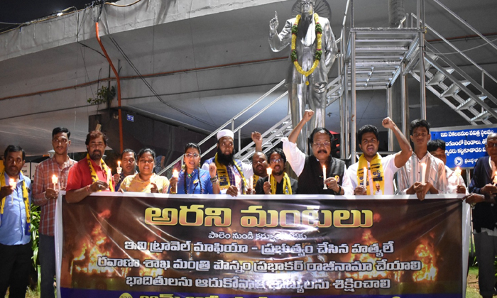 ట్రావెల్ మాఫియా(Travel mafia)ను ప్రభుత్వమే ప్రోత్సహించడాన్ని నిరసిస్తూ ఆమ్ ఆద్మీ పార్టీ హైదరాబాద్, ట్యాంక్ బండ్, అంబెడ్కర్ విగ్రహం వద్ద ప్రదర్శన నిర్వహించి కర్నూల్ బస్సు ప్రమాద బాధితులకు కొవ్వొత్తులు వెలిగించి ఆప్ శ్రేణుల నివాళులు అర్పించారు. ఈ సందర్బంగా డాక్టర్ దిడ్డి సుధాకర్ మాట్లాడుతూ తెలంగాణ(Telangana), ఆంధ్రప్రదేశ్(AndhraPradesh) వంటి రాష్ట్రాలలో నడిచే ప్రైవేట్ ట్రావెల్స్ బస్సులు నాగాలాండ్ లేదా అరుణాచల్ ప్రదేశ్ వంటి రాష్ట్రాల టూరిస్ట్ పర్మిట్ రిజిస్ట్రేషన్ చేసిన బస్సులను రెగ్యులర్ గా నడిపేందుకు రాష్ట్ర రవాణా శాఖ ఎందుకు అనుమతిస్తున్నారని అయన ప్రశ్నించారు.