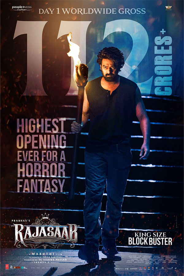 రెబల్ స్టార్ ప్రభాస్ నటించిన “రాజా సాబ్” మూవీ నిన్న (శుక్రవారం) థియేటర్స్ లోకి వచ్చి బ్లాక్ బస్టర్ సక్సెస్ అందుకుంది. ఈ సినిమాకు వరల్డ్ వైడ్ భారీ ఓపెనింగ్స్ వచ్చాయి. మొదటి రోజు “రాజా సాబ్” ప్రపంచవ్యాప్తంగా 112 కోట్ల రూపాయల గ్రాస్ వసూళ్లు దక్కించుకుంది. హారర్ ఫాంటసీ జానర్ లో హయ్యెస్ట్ ఓపెనింగ్స్ అందుకున్న చిత్రంగా “రాజా సాబ్” నిలుస్తోంది. ఈ చిత్రంలోని హారర్, ఫాంటసీ ఎలిమెంట్స్ ను యూత్, చిల్డ్రన్ తో టు ఫ్యామిలీ ఆడియెన్స్ బాగా ఇష్టపడుతున్నారు.