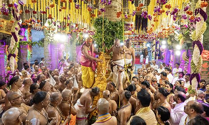 అఖిలాండకోటి బ్రహ్మాండనాయకుడు తిరుమల శ్రీవేంకటేశ్వరుడి బ్రహ్మోత్సవాల్లో ప్రధాన ఘట్టం ధ్వజారోహణం వైభవంగా జరిగింది. బుధవారం సాయంత్రం మీనలగ్నంలో ముక్కోటి దేవతలను ఆహ్వానిస్తూ నిర్వహించిన ధ్వజారోహణంతో బ్రహ్మోత్సవాలు ప్రారంభమయ్యాయి. రాత్రి తొమ్మిది గంటలకు నిర్వహించే పెద్దశేష వాహన సేవతో బ్రహ్మోత్సవాల వాహన సేవలు ప్రారంభమయ్యాయి. కూటమి ప్రభుత్వం ఏర్పడిన తర్వాత ఏర్పాటు చేసిన తొలి ధర్మకర్తల మండలి హయంలో అంగరంగ వైభవంగా బ్రహ్మోత్సవాలు నిర్వహించేందుకు తితిదే సిద్ధమైంది.