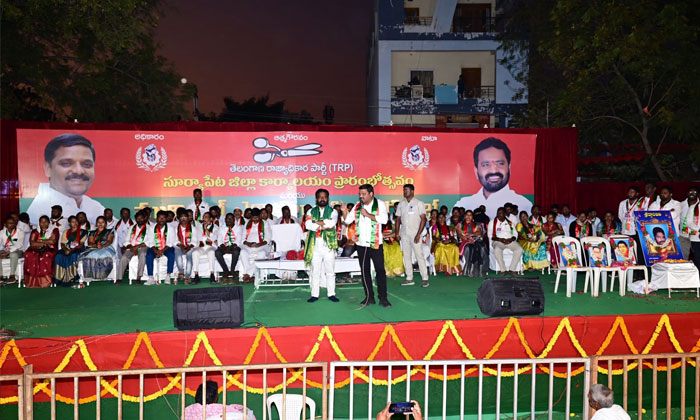 అనంతరం ఉమ్మడి నల్గొండ జిల్లా ఇంచార్జ్ వట్టె జానయ్య యాదవ్ తో కలిసి జిల్లా కార్యాలయం ప్రారంభోత్సవం చేశారు. అనంతరం అక్కడే ఏర్పాటు చేసిన సభలో మాట్లాడారు. సూర్యాపేట నియోజకవర్గంలో అధికార పార్టీ నేతలు బీసీలు, ఎస్సీలు, ఎస్టీలు, మైనార్టీలపై బెదిరింపులు, ఒత్తిళ్లు కొనసాగిస్తున్నారని తెలంగాణ రాజ్యాధికార పార్టీ (టీఆర్‌పీ) అధ్యక్షులు, ఎమ్మెల్సీ తీన్మార్ మల్లన్న తీవ్ర ఆరోపణలు చేశారు. ఈ పరిస్థితుల్లో సూర్యాపేట పట్టణాన్ని కాపాడుకోవాల్సిన బాధ్యత ప్రజలపై ఉందన్నారు.