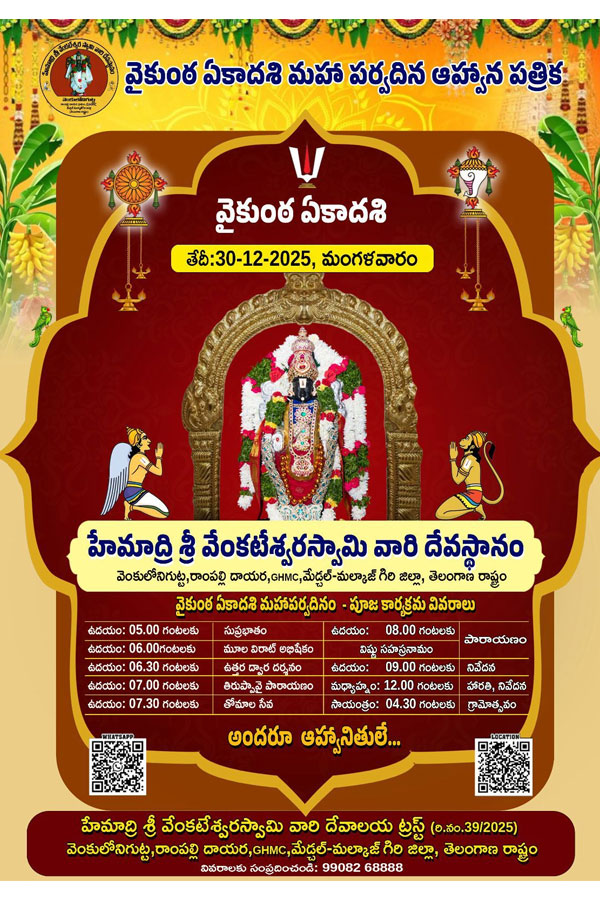 రాంపల్లి దాయర వెంకులోని గుట్టపై వెలసిన కలియుగ ప్రత్యక్ష దైవమైన హేమాద్రి శ్రీ వేంకటేశ్వర స్వామి వారి దర్శనానికి తగిన ఏర్పాట్లను చేసినట్లు ఆలయ ఛైర్మెన్ కందాడి హన్మంత్ రెడ్డి తెలిపారు. భక్తులు అధిక సంఖ్యలో స్వామివారిని దర్శించుకుని తరించాలని కోరారు.