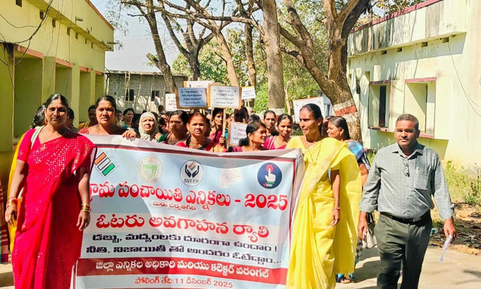 మతము జాతి ప్రాంతము కులము వర్గము భాష భేదం లేకుండా ఎలాంటి ప్రలోభాలకు ఒత్తిళ్లకు లొంగకుండా నిర్భయంగా ఓటు హక్కు వినియోగించుకోవాలని కోరారు. ఈ కార్యక్రమంలో డిపిఎం శంకర్, ఏపిఎం రాజీరు, మండల సమైక్య ప్రతినిధులు స్వప్న, ఫరీదా బేగం, సిడిపిఓ దేబోరా సీసీలు గోలి కొమురయ్య, శ్యాంసన్, సుధాకర్, దేవేంద్ర సీఈఓ శ్రీనివాస్ ఐపీడీఎస్ సీఈఓ శ్రీనివాస్ సూపర్వైజర్లు, వివోఏలు, వివో ప్రతినిధులు అంగన్వాడి ఆశా కార్యకర్తలు మండల సమైక్య సిబ్బంది పూజారి రాధిక చిట్టి మల్ల అరుణ ఎస్వీబీ సీఆర్పీలు స్వయం సహాయక బృందాల సభ్యులు తదితరులు పాల్గొన్నారు.