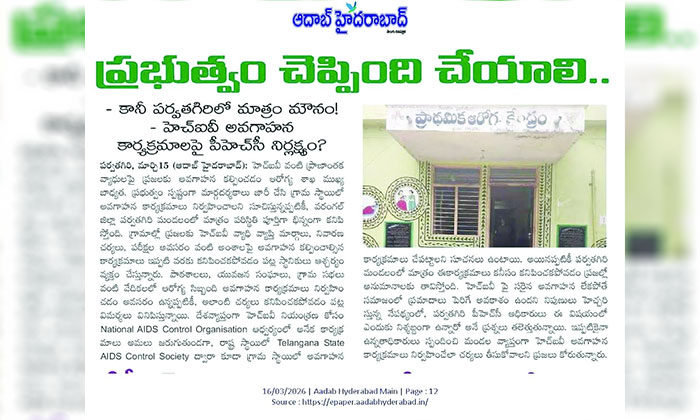 పేద ప్రజలకు అందించే వైద్య సేవల్లో ఎలాంటి నిర్లక్ష్యాన్నీ సహించబోమని జిల్లా కలెక్టర్ డా. సత్య శారద స్పష్టం చేశారు. ఈనెల 12 నుండి ‘ఆదాబ్ హైదరాబాద’ దినపత్రికలో వరుస కథనాలపై శుక్రవారం వరంగల్ జిల్లా పర్వతగిరి ప్రాథమిక ఆరోగ్య కేంద్రాన్ని ఆమె ఆకస్మికంగా తనిఖీ చేశారు. ఈ సందర్భంగా జిల్లా కలెక్టర్ ఆసుపత్రిలో అందుతున్న వైద్య సేవలు, సిబ్బంది హాజరు, ఔషధాల లభ్యత, పరిశుభ్రత, రికార్డు నిర్వహణ తదితర అంశాలను కలెక్టర్ సమగ్రంగా పరిశీలించారు.