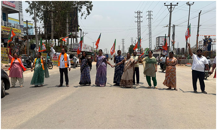 మహిళల హక్కుల విషయంలో పెద్ద పెద్ద ప్రకటనలు చేసే కాంగ్రెస్ కూటమి ఈ బిల్లుకు వ్యతిరేకంగా వ్యవహరించడం అన్యాయమని విమర్శించారు. మహిళల అభివృద్ధిని అడ్డుకునే విధానాలను ప్రజలు గమనిస్తున్నారని తెలిపారు. ఈ నేపథ్యంలో నిరసనగా బాలాజీనగర్ చౌరస్తాలో మహిళలు, నాయకులు కలిసి రాస్తా రోకో కార్యక్రమం నిర్వహించారు. ఈ కార్యక్రమంలో పలువురు మహిళలు పాల్గొని నినాదాలు చేస్తూ తమ ఆగ్రహాన్ని వ్యక్తం చేశారు.ఇప్పటికైనా కాంగ్రెస్ తన వైఖరిని మార్చుకుని మహిళల పక్షాన నిలవాలని వారు డిమాండ్ చేశారు. లేనిపక్షంలో ప్రజలే తగిన సమాధానం ఇస్తారని హెచ్చరించారు.